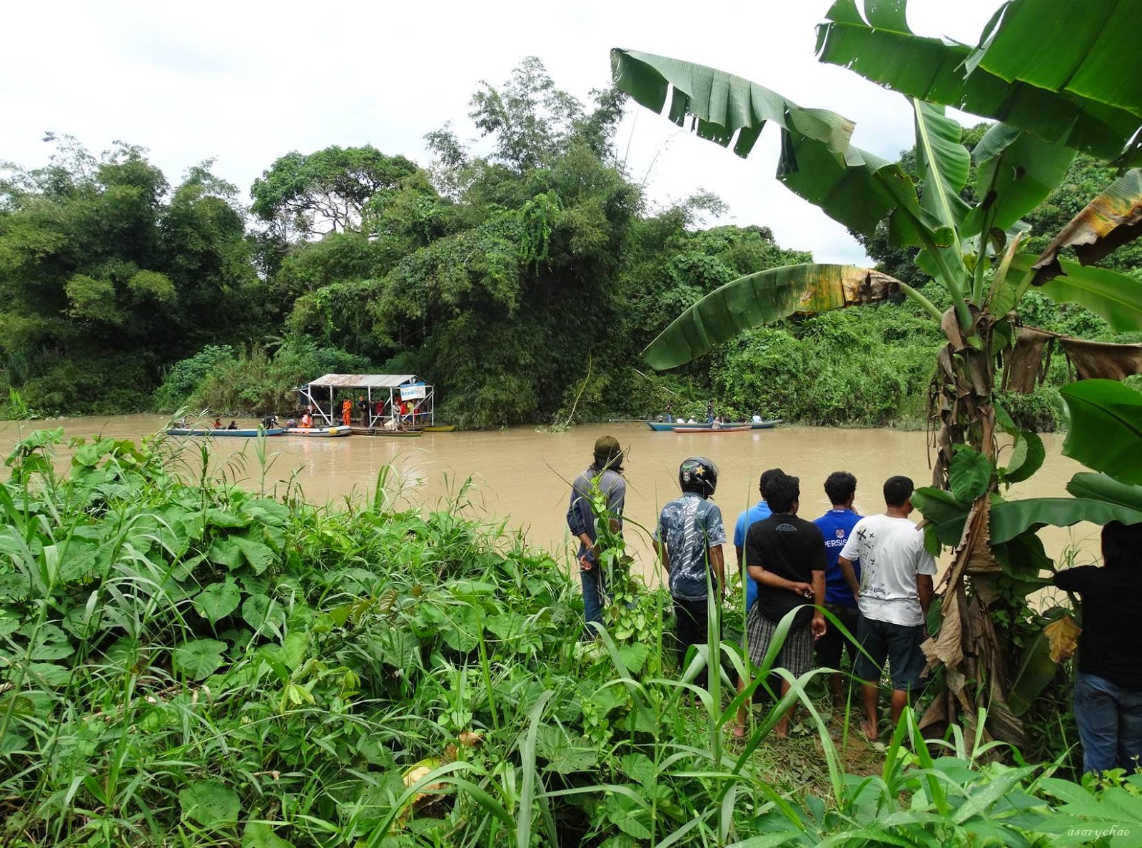 Meskipun kondisi di sekitar lokasi pencarian becek dan licin karena diguyur hujan, ratusan orang tetap berlarian ingin melihat korban yang sudah dibawa dengan mobil ambulance.