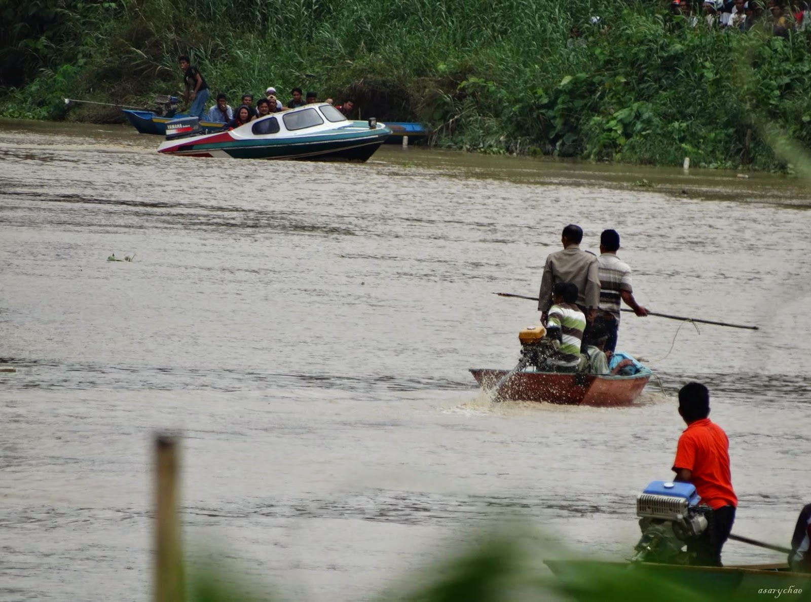 Waktu polisi membidik buaya, Samsuariana saya lihat betul. Setelah ditembak tidak kena juga, bahkan buaya itu menghilang membawa adiknya.